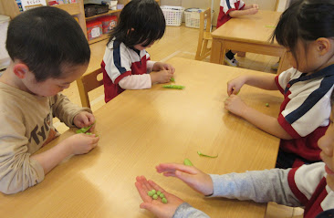 子どもたちがえんどう豆のさやをむいてくれました✨